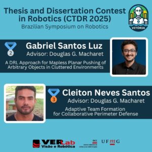 Os alunos do Laboratório de Visão Computacional e Robótica (Verlab) do Departamento de Ciência da Computação (DCC) da UFMG, Gabriel Luz e Cleiton Neves Santos, receberam o segundo e o terceiro lugares, respectivamente, no Concurso de Teses e Dissertações em Robótica (CTDR 2025).