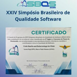 O doutor Lucas Francisco da Matta Vegi, formado pelo Programa de Pós-graduação em Ciência da Computação da UFMG e professor da Universidade Federal de Viçosa (UFV), conquistou o segundo lugar no Concurso de Teses e Dissertações em Qualidade de Software (CTDQS), realizado durante o XXIV Simpósio Brasileiro de Qualidade de Software (SBQS 2025), entre 4 e 7 de novembro de 2025, em São José dos Campos (SP).