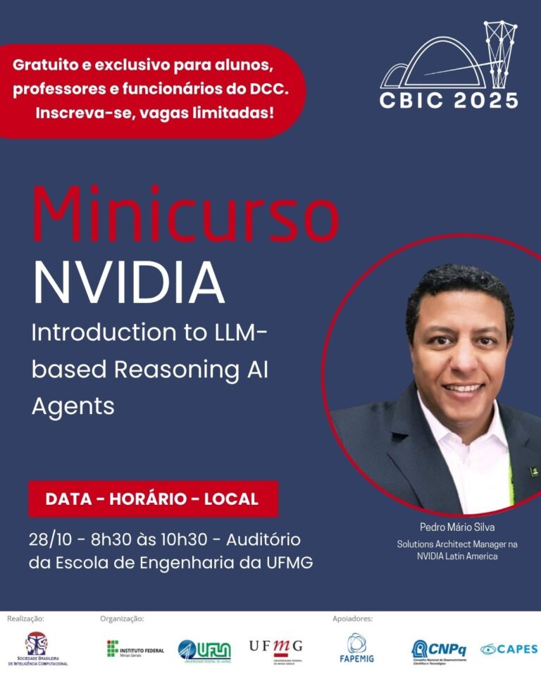 Palestra discute o uso de dados e engenharia na busca por soluções inovadoras Professor do DCC integra grupo de trabalho do Plano Brasileiro de Inteligência Artificial Pesquisadores do DCC participam de Workshop sobre Teoria Espectral de Grafos 2025 IA na indústria Metalúrgica e de Materiais é tema de palestra no DCC UFMG e startup mineira vão criar IA para responder a perguntas sobre o SUS Alunos do DCC conquistam 3º lugar no Prêmio de Melhor Artigo no CBIC 2025 Alunos do PPGCC da UFMG são contemplados com bolsas globais de doutorado do Google 2025 Pesquisadores do DCC se destacam em eventos nacionais de IA e Bioinformática Palestra: Inovação em nanoescala: a trajetória da FabNS e o nanoscópio Porto Palestra aborda aprendizado incremental e novas técnicas para retreinar redes neurais Congresso Brasileiro de Inteligência Computacional oferece minicurso gratuito e exclusivo para o DCC Lançado site do BlueMacaw, microcontrolador brasileiro construído com a participação de pesquisadores da UFMG Pesquisadores do DCC participam de workshop internacional sobre Teoria Algébrica de Grafos Ranking da Stanford aponta professores do DCC entre os mais influentes do mundo Professor da universidade de Pádua, na Itália, realiza tutorial gratuito e aberto ao público Alunos do DCC/UFMG apresentam mais de 30 trabalhos durante a XXXIV Semana de Iniciação Científica Alunas da UFMG conquistam ouro na Maratona de Programação Minas de Minas Professora do DCC participa de congresso internacional sobre Cibersegurança e IA no Peru Virgílio Almeida, emérito da UFMG, é novo membro da Academia Nacional de Engenharia dos EUA Pesquisadores do DCC/UFMG e instituições parceiras conquistam os principais prêmios do SBBD 2025 Inteligência Artificial responsável é tema de palestra no DCC/UFMG Painel gratuito reunirá dois gigantes do empreendedorismo no DCC/UFMG Concurso público oferece vagas para professor doutor em Ciência da Computação na UFMG Programa de Pós-graduação em Ciência da Computação da UFMG abre inscrições para mestrado << Página1 Página2 Página3 Página4 … Página60 >>