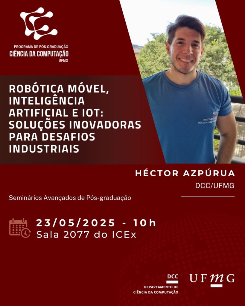 Na próxima terça-feira, 24, na sala 2077 do Instituto de Ciências Exatas (ICEx), de 9h30 às 11h30, os engenheiros de software Andre Silva e Fernando Rocha irão proferir a palestra “Agentes de Inteligência Artificial e Protocolos de Contexto de Modelos”.