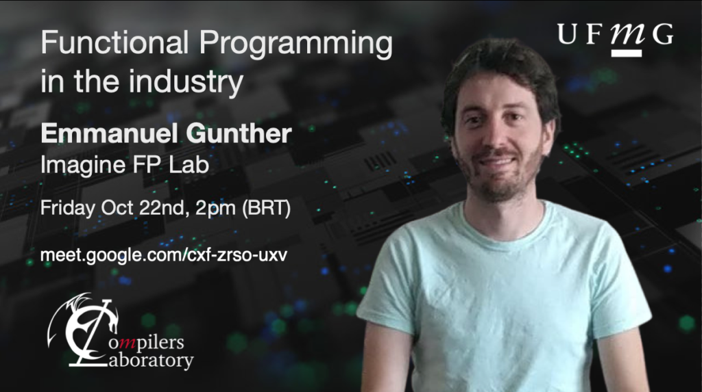 Nesta sexta-feira, 22, às 14h, Emmanuel (Manu) Gunther compartilhará experiências adquiridas ao usar Haskell como linguagem de programação na indústria de software. Manu é professor da Universidade Nacional de Córdoba, Argentina, e foi pesquisador do Consejo Nacional de Investigaciones Científicas y Técnicas. Fez pesquisas em teoria do tipo mecanização de provas e programação funcional. Desde […]