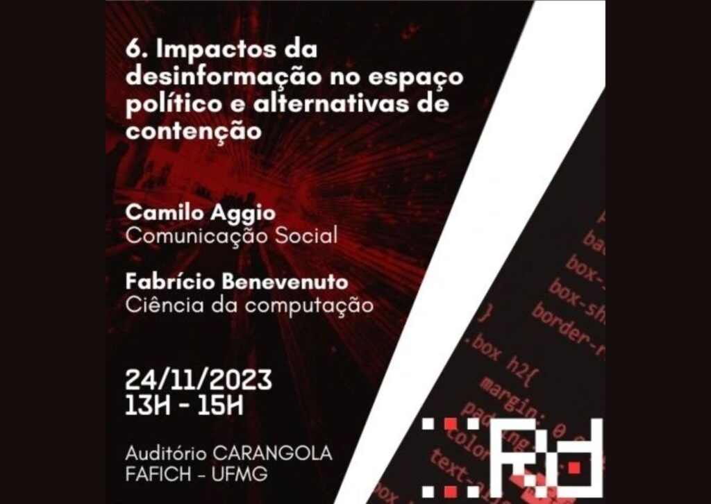 O professor do Departamento de Ciência da Computação da UFMG, Fabrício Benevenuto, irá participar, nesta terça-feira, 13, às 14 horas, no Auditório da Reitoria – Campus Pampulha da UFMG, do painel “Programa UFMG de Formação Cidadã em Defesa da Democracia”, com apresentação do projeto “Eleições sem fake”. O evento integra o Seminário “Minas Contra Fake […]