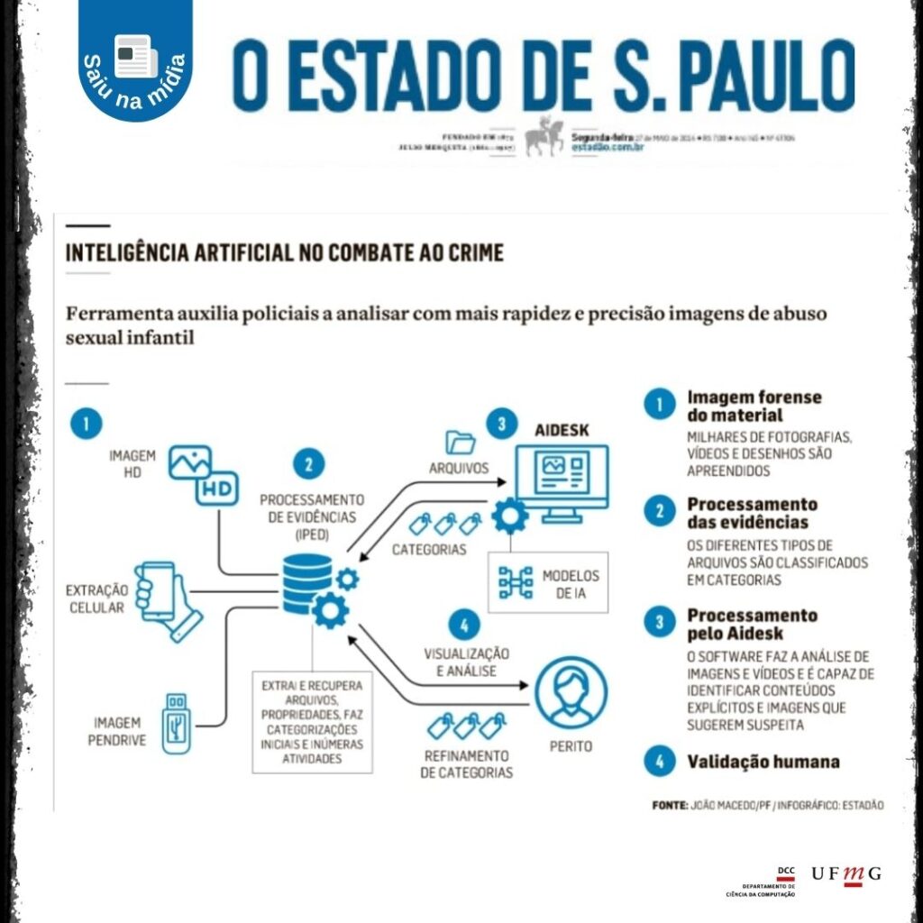 Foi publicada nesta segunda-feira, 27, no jornal O Estado de São Paulo, uma matéria produzida pela jornalista Aline Reskalla, repercutindo uma ferramenta criada pelos pesquisadores do Departamento de Ciência da Computação (DCC) da UFMG, João Macêdo (doutorando e perito da Polícia Federal), Camila Laranjeira (doutoranda), Fabrício Benevenuto (professor/pesquisador) e Jefersson Alex dos Santos (professor/pesquisador –