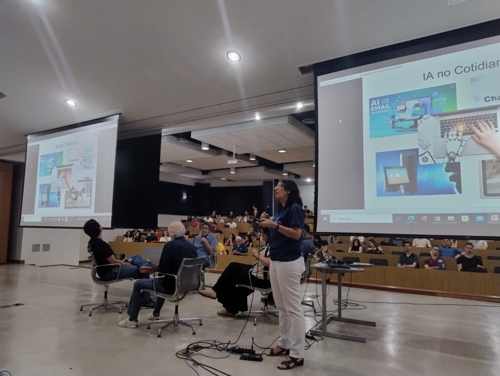 Na terça-feira, 11, o Departamento de Ciência da Computação (DCC) da UFMG, em parceria com o CI-IA Saúde, promoveu o “DCC Start & Workshop em Inteligência Artificial Responsável”. O evento ocorreu no Campus da Pampulha da UFMG e teve a participação de mais de 400 presentes, que tiveram a oportunidade de discutirem, junto com pesquisadores de renome nacional e internacional, as limitações dos dados e do aprendizado de máquina, além de ações e responsabilidades quanto ao uso da IA. Também houve apresentações de experiências e trajetórias de sucesso profissional de egressos do DCC.