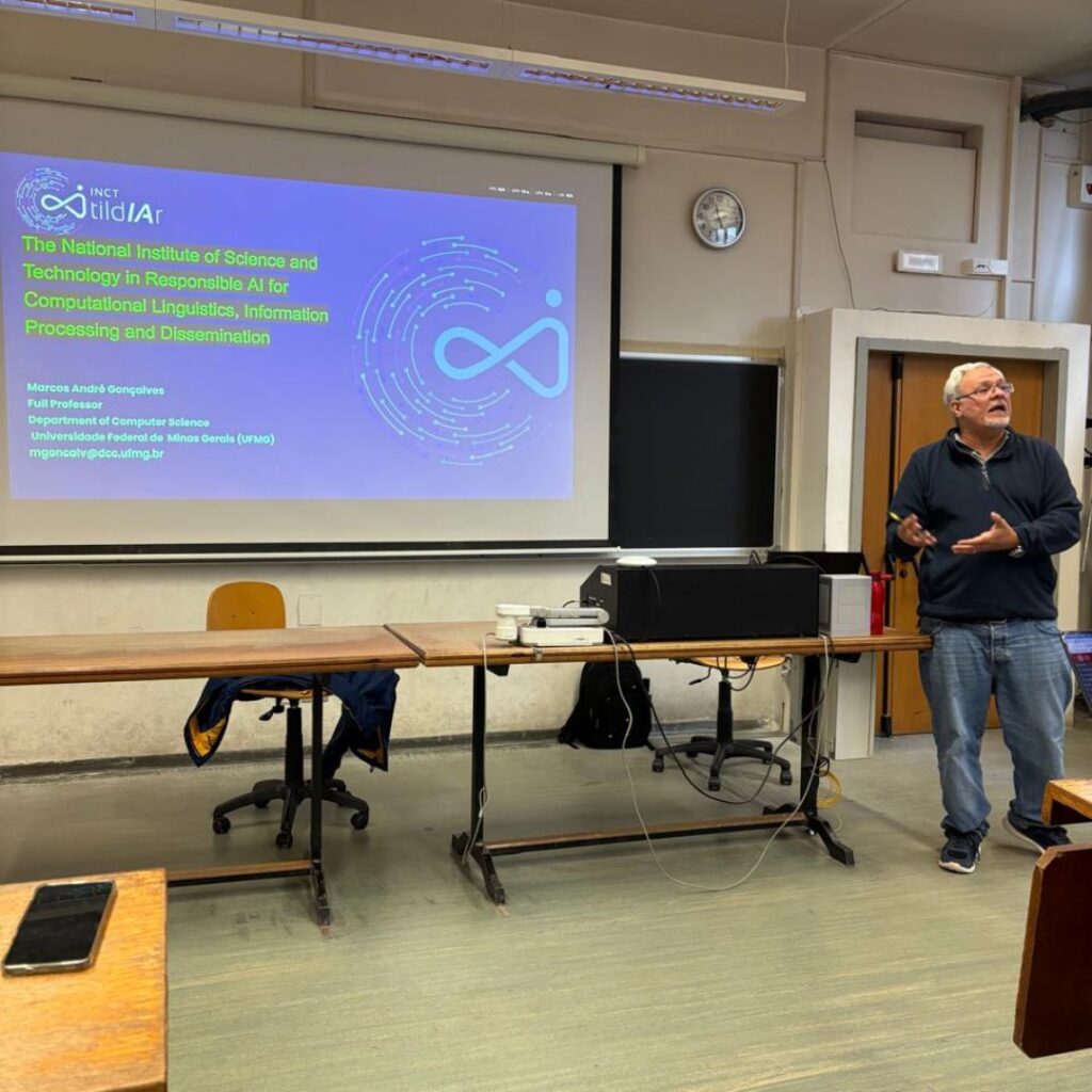 O Instituto Nacional de Ciência e Tecnologia em Inteligência Artificial Responsável (INCT TILDIAR), com sede no Departamento de Ciência da Computação (DCC) da UFMG e coordenado pelo professor do departamento, Marcos André Gonçalves, concluiu, nesta sexta-feira, 6, uma agenda de divulgação e articulação institucional na Itália. A programação foi encerrada com uma palestra na Università di Padova, ministrada pelo coordenador do INCT, reforçando a parceria com o professor da universidade Nicola Ferro.