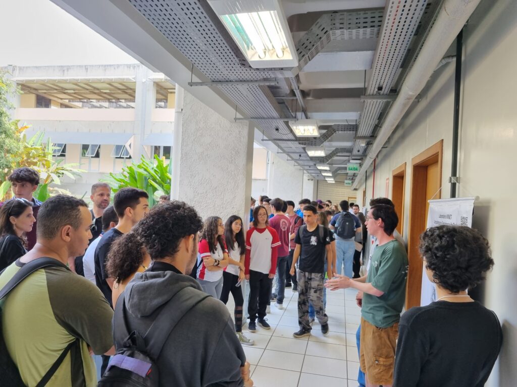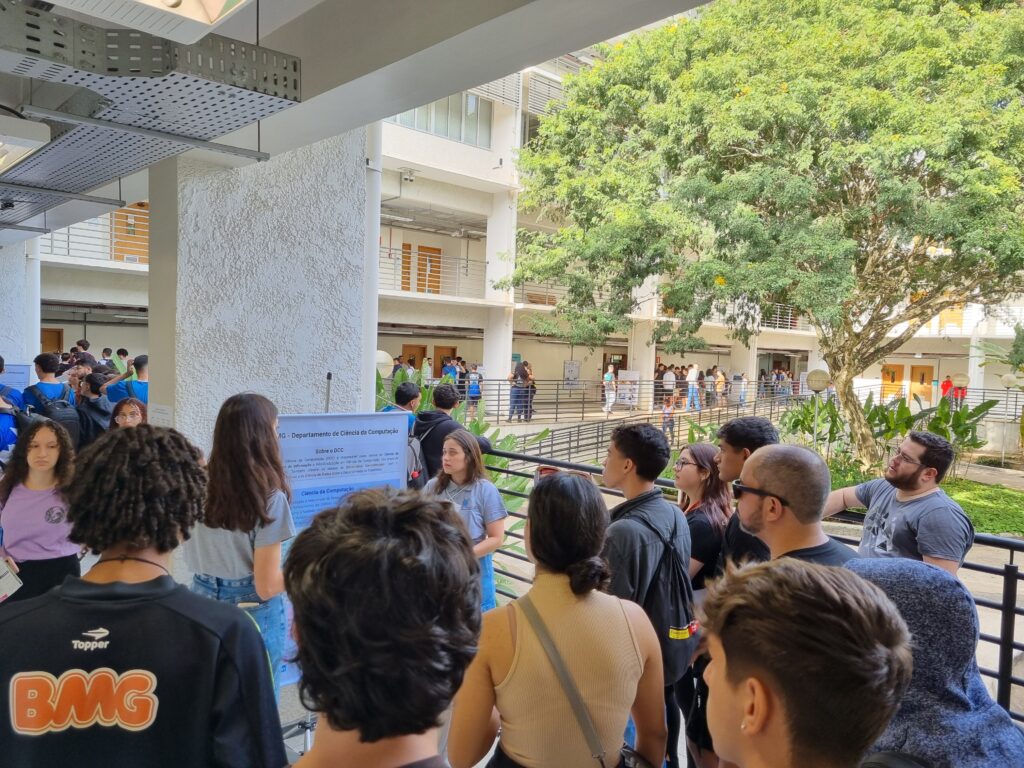 Filas de estudantes para participarem das palestras, grandes rodas em frente aos laboratórios, voluntários disputados em suas explicações, assim foi a Mostra Sua UFMG 2024 no Departamento de Ciência da Computação (DCC). No decorrer do sábado, 25, professores e 53 alunos do departamento receberam estudantes do Ensino Médio para compartilharem a realidade do DCC e mostrarem o que as graduações nos cursos de Ciência da Computação, Sistemas de Informação, Matemática Computacional e Ciência de Dados podem trazer para suas vidas, caso optem por ingressar na UFMG em um desses cursos.