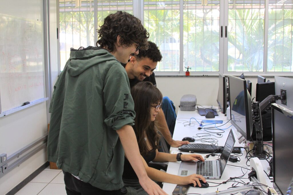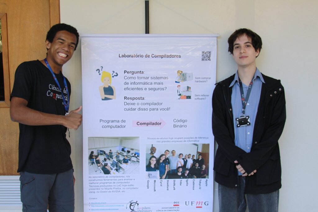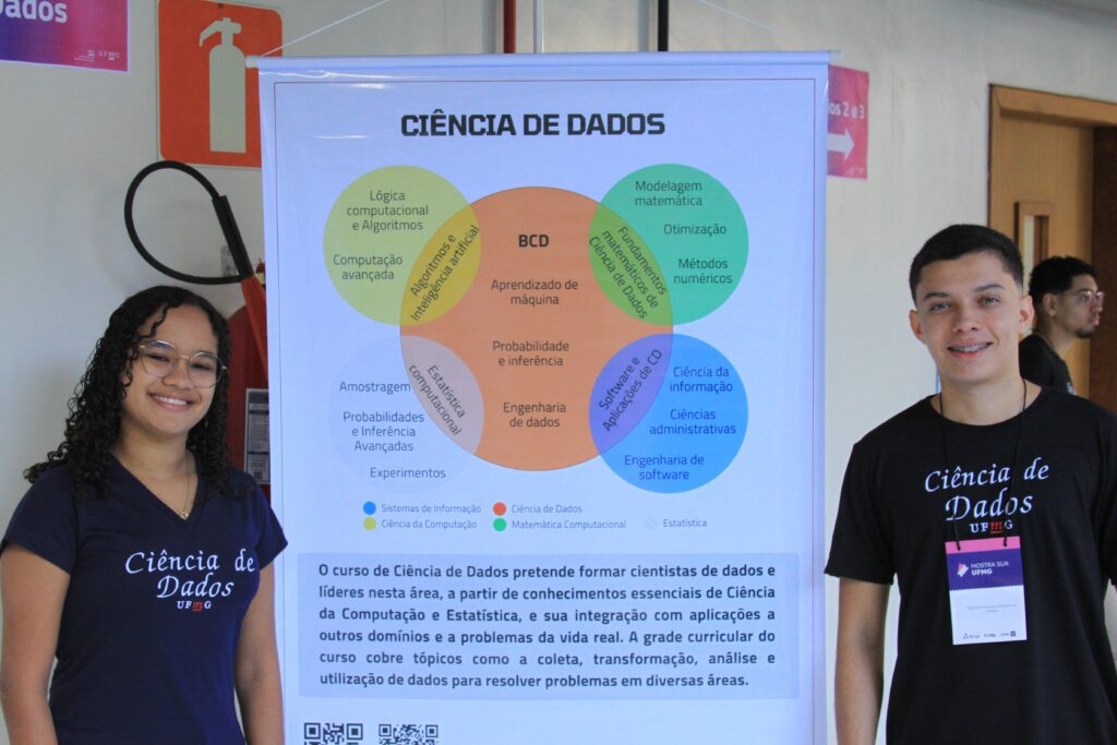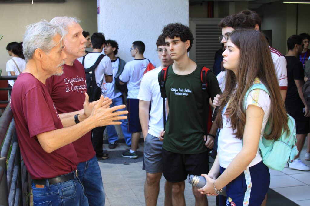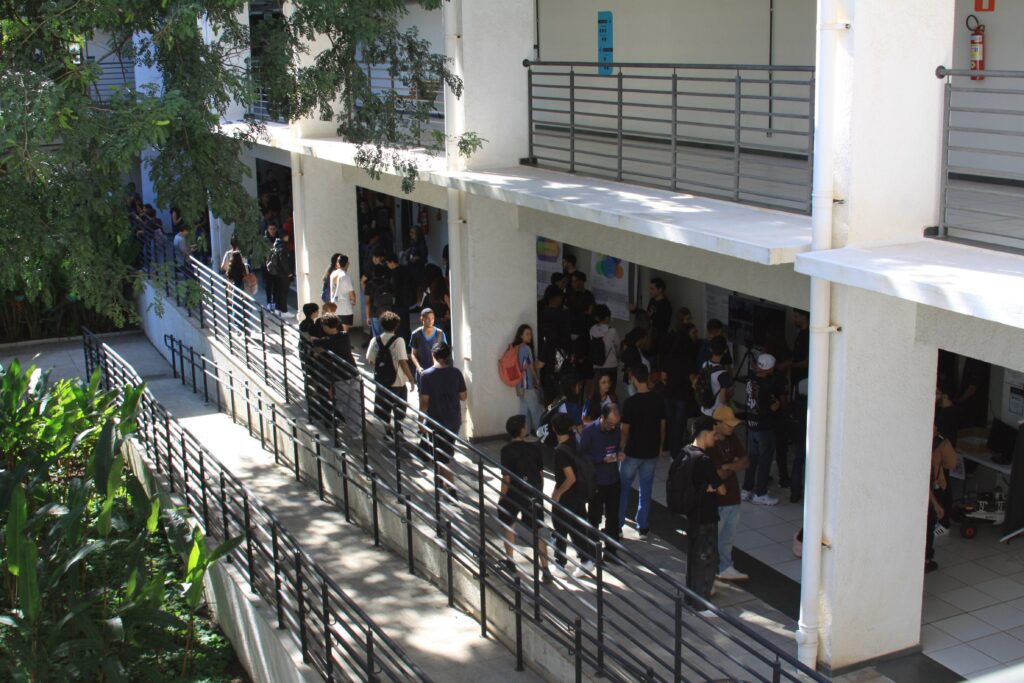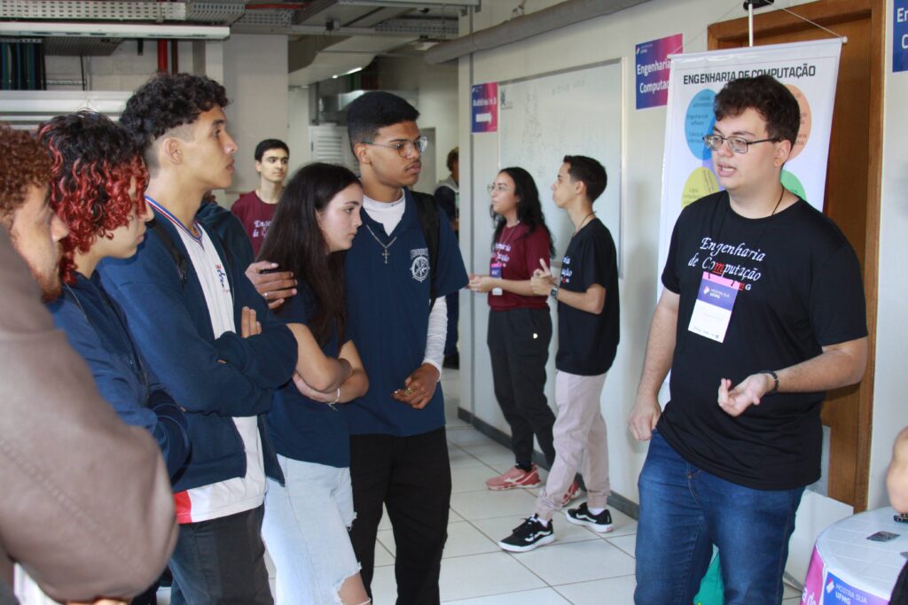 Durante todo o dia, professores e alunos do departamento se dedicaram a mostrar o que faz da UFMG uma referência: mini-palestras explicando os cursos, as áreas de pesquisa, as oportunidades no mercado de trabalho e as possibilidades de transformar vidas com a tecnologia. E não parou por aí! Nos corredores do 2º andar do Anexo U, banners coloridos e informativos chamavam atenção, com os mais de 80 estudantes/voluntários dos cursos prontos para esclarecer dúvidas e compartilhar suas experiências nos laboratórios.