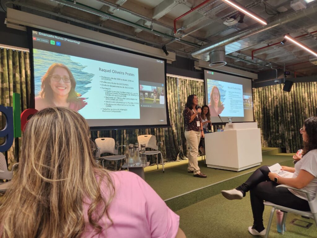 A edição deste ano, que ocorreu no escritório do Google de Belo Horizonte, trouxe um pouco dos projetos desenvolvidos no DCC/UFMG para o evento, além da visão sobre o trabalho e oportunidades relacionadas. Para isso, houve uma feira de projetos/oportunidades de universidades, onde as jovens puderam se conectar e perceber a gama de áreas em que podem atuar, mesmo durante a graduação.
