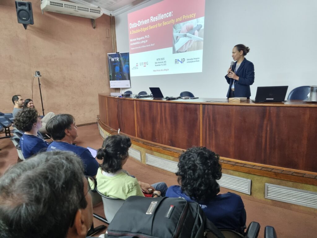 A programação incluiu temas como estratégias de segurança para redes modernas, melhores práticas de hardening, IPv6, resiliência orientada por dados e formação em cibersegurança. Participaram como palestrantes representantes da RNP, FORTINET e NIC.br, além de professores do DCC especializados em segurança digital, promovendo discussões e troca de experiências entre profissionais e instituições parceiras.