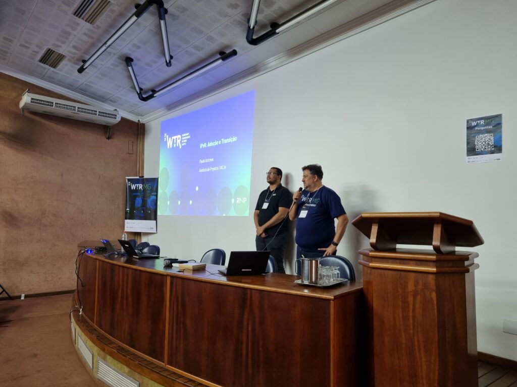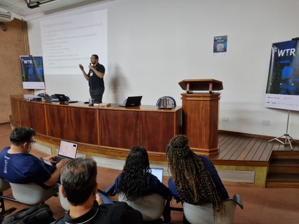 Na última terça-feira, 18, a coordenação do Ponto de Presença da Rede Nacional de Ensino e Pesquisa (RNP) em Minas Gerais, sediado no Departamento de Ciência da Computação (DCC) da UFMG, promoveu o Workshop de Tecnologias de Rede (WTR PoP-MG 2025). O evento ocorreu no auditório 3 do Instituto de Ciências Exatas (ICEx), Campus Pampulha, em Belo Horizonte, e foi oficialmente aberto pelo chefe do DCC e coordenador-geral do PoP-MG, professor Heitor Ramos, e pelo diretor de Tecnologia da Informação da UFMG e professor do DCC, Dorgival Olavo Guedes Neto.